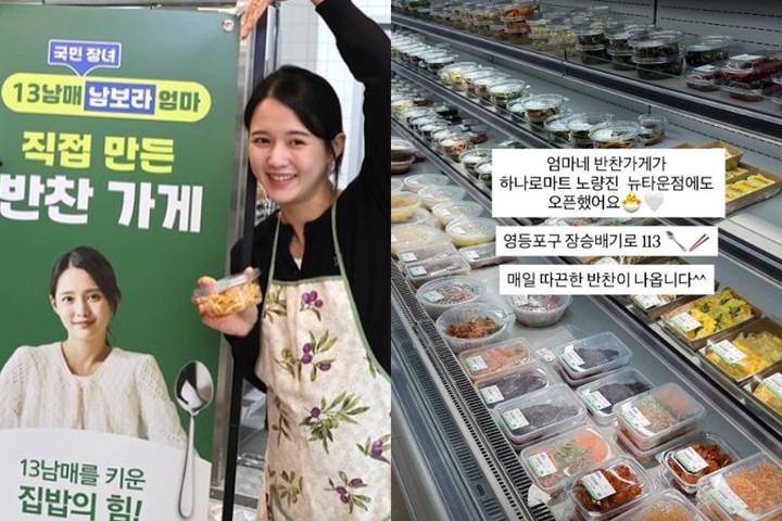 남보라는 지난 12일 개인 계정을 통해 "엄마네 반찬가게가 하나로마트 한 지점에도 오픈했다"며 마트 냉장쇼케이스에 풍성한 반찬이 놓여있는 사진을 업로드했다. 이와 함께 "매일 따끈한 반찬이 나온다"며 홍보에 열의를 보였다.