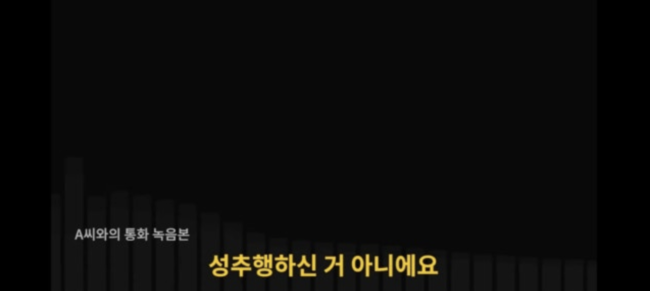 공개된 녹취록에는 A씨가 “저한테 성추행한 거 아니에요. 일방적으로 한 것도 아니고요. 그 당시에 그 순간에는 좋았어요. 좋았고 이걸로 법적으로 뭘 하려고 했으면 아무것도 못 해요”라고 말하는 부분도 포함됐다. 또 다른 녹취록에는 “얼마나 어마어마한 것도 아니고. 절 때린 것도 아니고, 강제적으로 한 것도 아니다. 배우님 잘못 없다”는 발언도 담겼다.