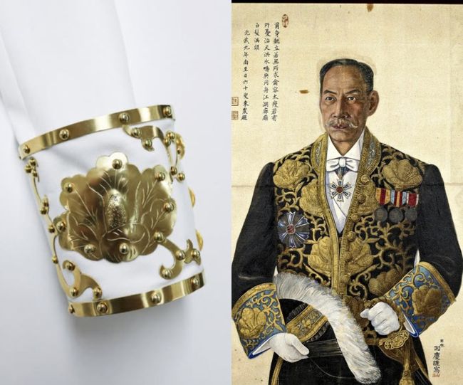 모티브가 된 대한제국 대례복은 독립운동가 1905년 독립운동가 김가진의 2등 칙임관 관복 대례복이다. 이에 의상을 제작한 르쥬 측은 무궁화 장식과 관련 영원과 끈기, 사라지지 않는 생명의 의미를 담았다고 밝혔다.