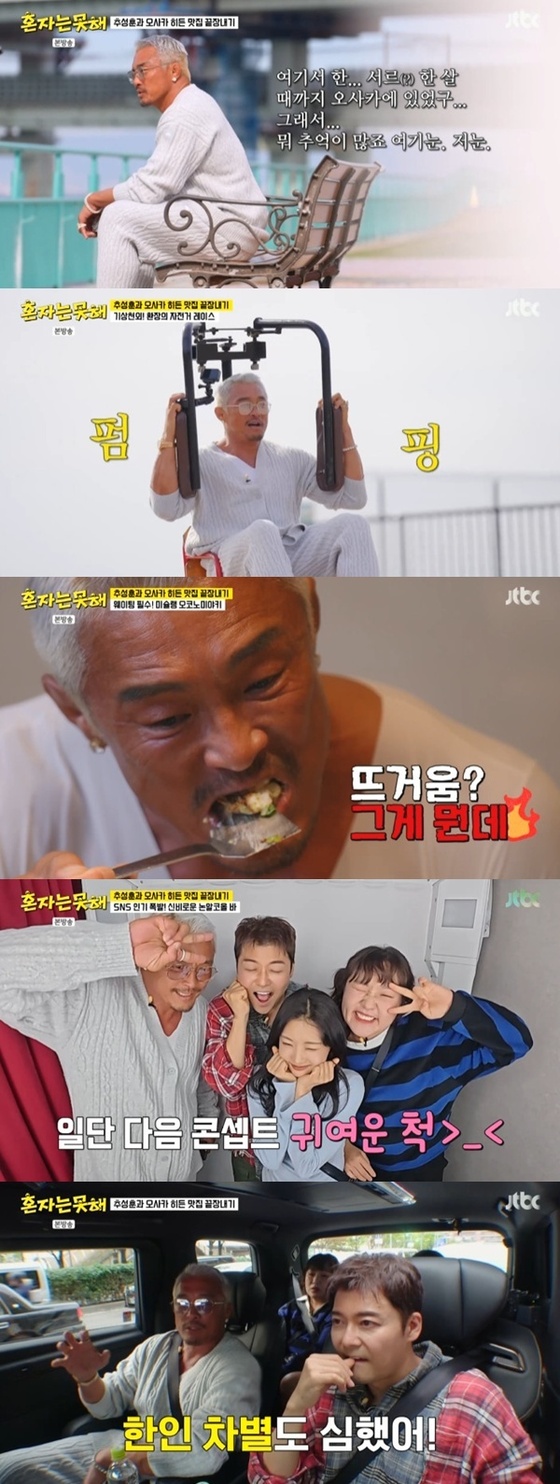 지난 17일 오후 방송된 JTBC 예능 프로그램 '혼자는 못 해'에서는 오사카 먹방 투어에 나선 전현무, 추성훈, 이수지, 이세희의 모습이 담겼다.