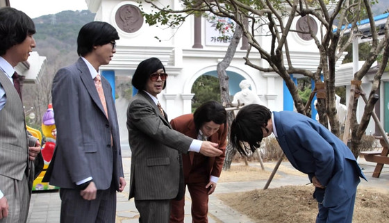 하지만 유재석은 이내 동생들 앞에서 고개를 조아리고 있어, 무슨 상황인지 궁금증을 더한다. 유재석은 겸손하게 머리를 숙이며 90도 폴더인사를 하고, 하하와 주우재는 유재석을 쓰담쓰담하며 귀여워해 웃음을 유발한다. 그 와중에 허경환만 유재석과 함께 고개를 조아리면서, 사회생활 모드를 발동해 시선을 끈다. 유재석이 동생들 앞에서 한없이 고개가 가벼워진 이유는 무엇일지, 펀치 게임 내기 중 어떤 일이 벌어진 것일지 더욱 주목된다.