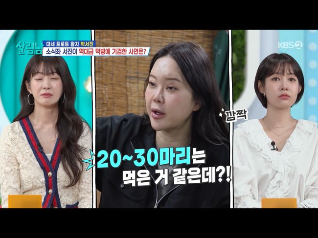 백숙을 시원스럽게 뼈를 발라 먹던 백지영은 “내가 걱정이 있다. 이 VCR이 나오면 은지원이 ‘저 누나 저기서 또 처먹고 있네’라고 말할 거 같아”라며 놀랐고, 은지원은 뜨끔한 표정이 됐다./osen_jin0310@osen.co.kr