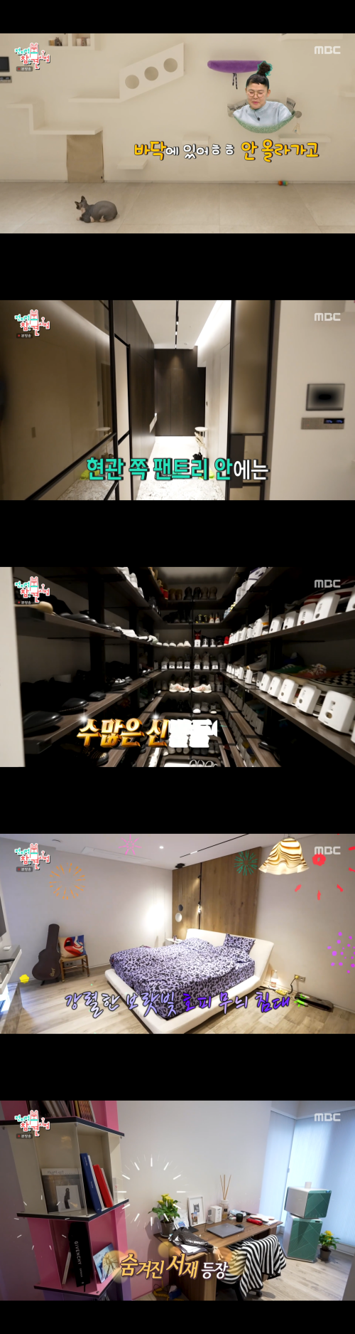이외에도 팬트리에는 다양한 신발이 정리돼 있었고, 침실에는 강렬한 보랏빛 호피 무늬 침대가 놓여 있어 독특한 취향을 엿보게 했다.