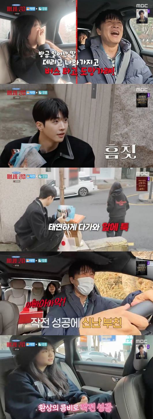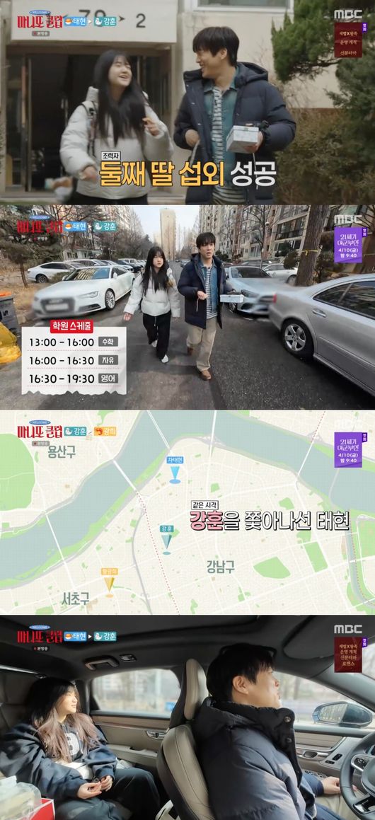 잠결에 불려 나온 딸에게 차태현은 차를 타고 이동하며 "걸리면 너랑 나랑 모르는 사이다. 어떻게든 버스를 타든 어디로든 도망가면 아빠가 데리러 가겠다"라며 웃음을 자아냈다. 이에 차태현의 둘째 딸은 "엄마한테 다 말할 거다. 방금 한 말. 자다 일어난 딸 데리고!"라며 소리쳐 웃음을 더했다.