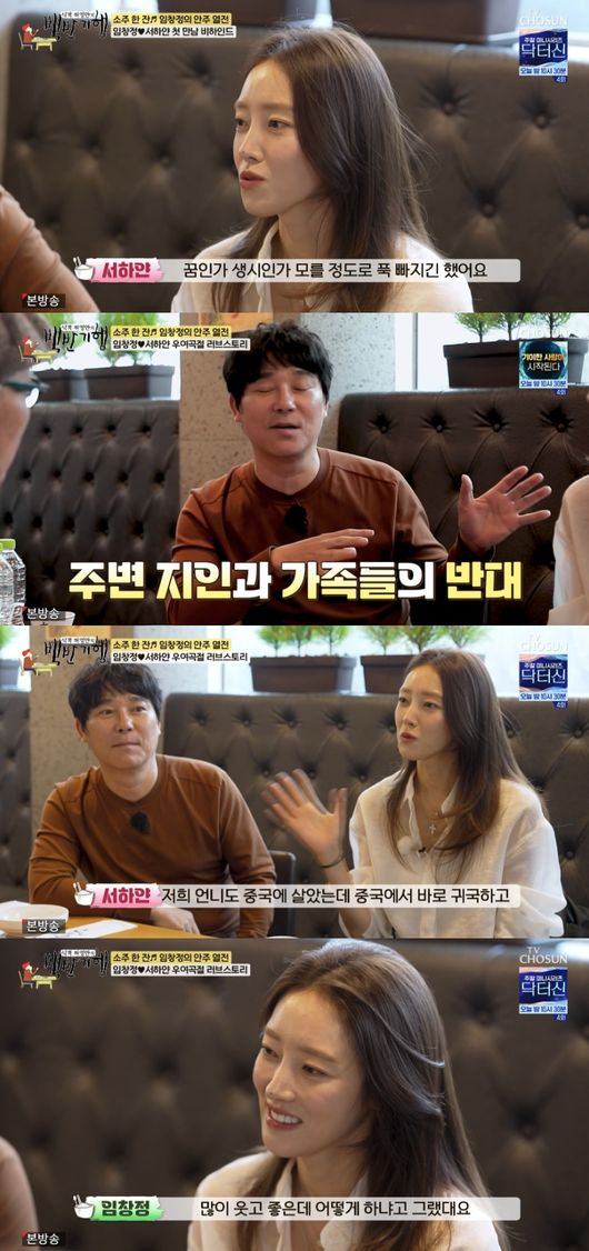 임창정은 “그때 울면서 우리 아내가 그랬다더라. 내가 저 사람이랑 있으면 제일 좋은데 많이 웃고 좋은데 어떻게 하냐고 했다더라. 그 말 듣는데 진짜 가슴이 너무 찡했다”라고 고마움을 드러냈다. 그렇게 두 사람은 지인들과 가족의 반대를 무릎쓰고, 18살 나이 차를 극복하며 부부가 됐다.