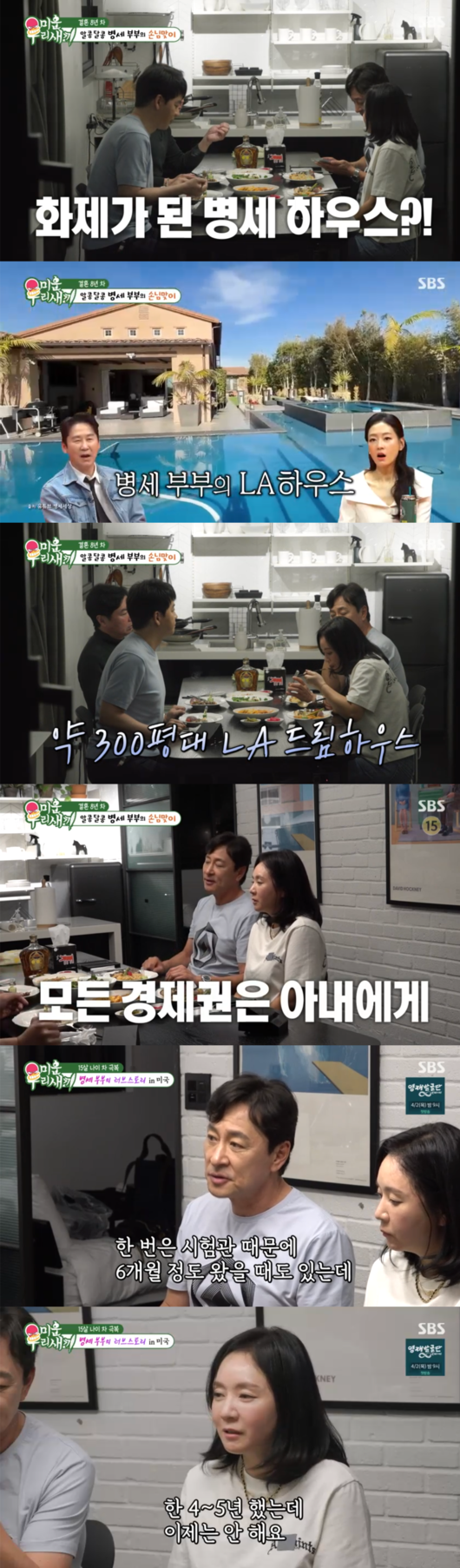 한편, 이날 방송에서는 아내의 놀라운 스펙도 공개됐다. 현재 주얼리숍 대표인 아내는 미국 LA에 300평 규모의 대저택을 보유한 재원으로 밝혀졌다. 김병세는 “모든 경제권은 아내에게 있다”고 밝혀 눈길을 끌었다.