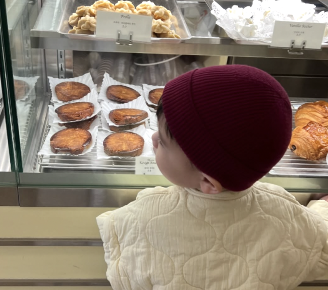 특히 아들은 아빠 김무열과 꼭 닮은 외모로 눈길을 끌었다. 또 다른 사진에서는 베이커리 쇼케이스 앞에서 빵을 바라보는 뒷모습까지 포착돼, 사랑스러운 매력을 더했다.