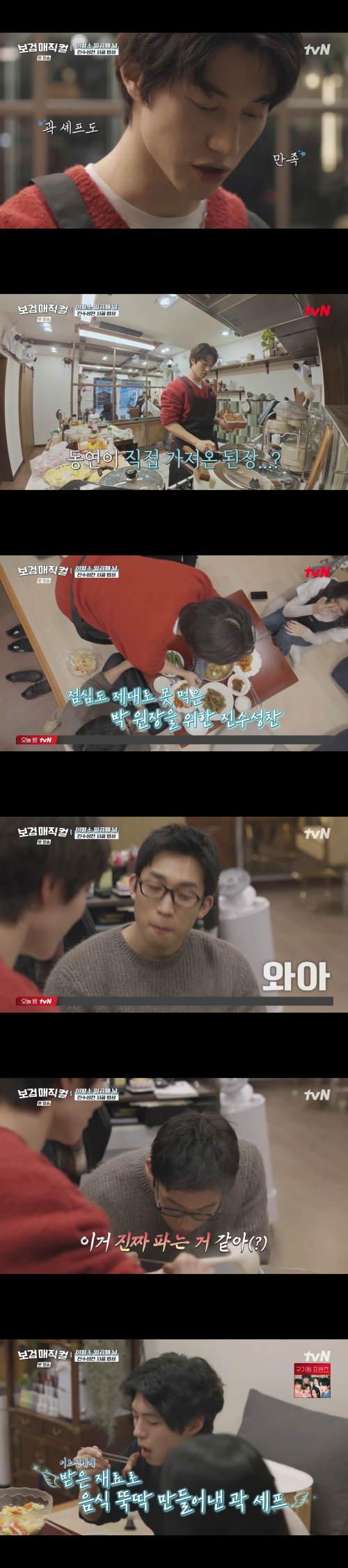 특히 한 입 맛본 이상이는 “진짜 파는 것 같다”고 감탄했고, 곽동연이 “집밥 같지 않냐”고 묻자 “진짜 파는 것 같다”고 재차 강조해 웃음을 자아냈다.