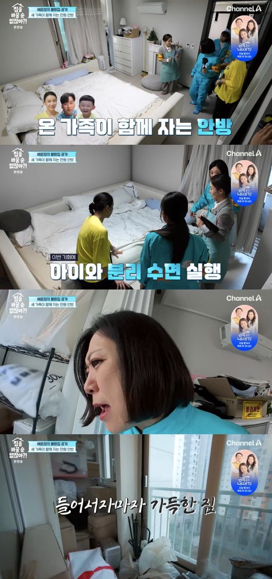 온 가족이 함께 자는 안방에는 방을 가득 채운 커다란 패밀리 침대가 놓여있었다. ‘정리 반장’ 이정원은 “패밀리 침대 특성상 분리할 수 있다”고 했고, 배윤정은 “이게 분리가 되냐”라고 깜짝 놀랐다.