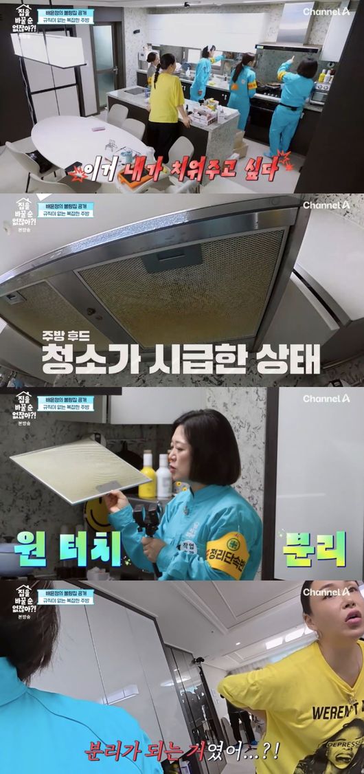 특히 김숙은 “이거 진짜 치워주고 싶다”라며 기름 때가 가득한 주방 후드를 가리켰다. 주방 후드가 분리되자 배윤정은 “어머 분리가 되는 거 였어?”라고 놀랐고, 김숙은 “후드 씻고 일회용 커버 씌우면 깔끔하게 유지 된다”고 꿀팁을 전했다.
