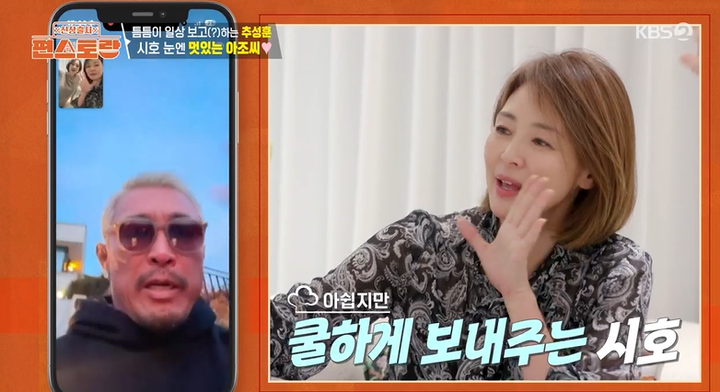 방송 중 남편 추성훈과의 깜짝 전화 통화도 연결됐다. 추성훈이 "오늘 촬영이 늦게 끝날 것 같다"라고 전하자, 야노 시호는 아쉬움을 뒤로하고 쿨하게 '화이팅'을 외치며 남편을 응원했다. 통화 직후 그녀는 "남편이 멋있어졌다. 전혀 멋있지 않을 때도 많이 봐서"라고 덧붙여 폭소를 유발했다. 이어 영상 통화에 등장한 사랑이는 야노 시호가 "두쫀쿠 먹고 싶은 사람"이라고 묻자 수줍게 "하이"라고 말하며 예전 '슈돌'에서의 명장면을 재연했다.
