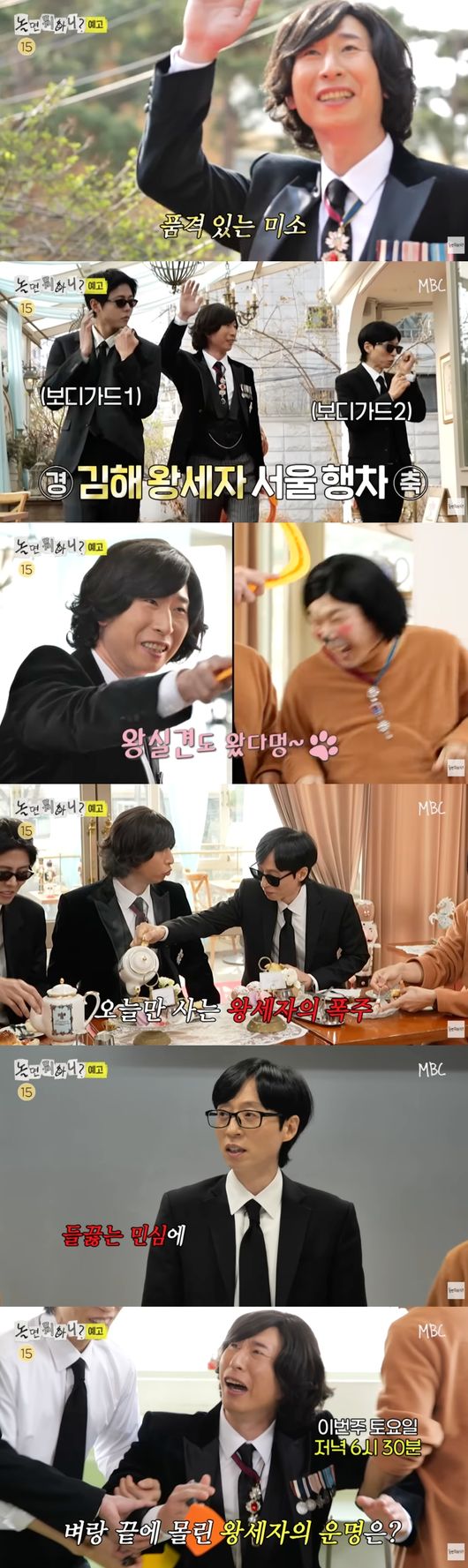 영상에서 양상국은 턱시도 정장에 각종 훈장까지 장식된 의상으로 '김해 왕세자'의 위풍당당한 등장을 알렸다. 유재석과 주우재가 보디가드처럼 양상국을 호위했고, 하하와 허경환은 반려견처럼 양상국을 따라 웃음을 더했다.