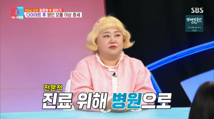 (MHN 김설 기자) 홍윤화가 9개월 만에 40kg라는 경이로운 체중 감량에 성공했으나, 이후 겪게 된 몸의 변화와 이상 증세를 고백했다.