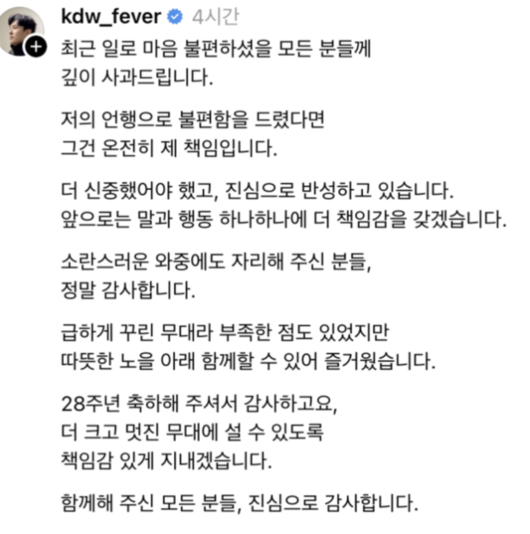 [OSEN=김수형 기자] 그룹 신홤 멤버 김동완이 자신의 발언에 대해 사과한지 약 5일만에 또 다시 SNS에 남긴 발언이 화제를 모으고 있다. 다만 멤버 신혜성에 대한 화제 시기와 맞물리면서, 여러가지 해석이 나오고 있다.