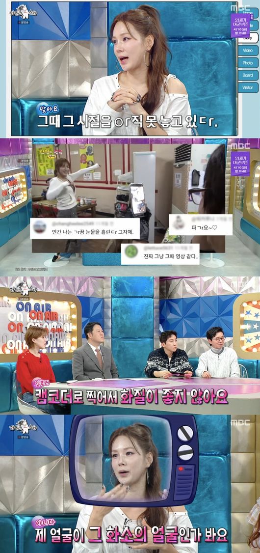 유세윤은 “영상 편집도 그런데 워낙 너무 그대로다”라며 변함없는 미모에 감탄했다. 채연은 “캠코더로 찍어서 화질이 좋지 않다. 제 얼굴이 그 화소의 얼굴인것 같다. 고화질 안 맞는다”라고 너스레를 떨었다.