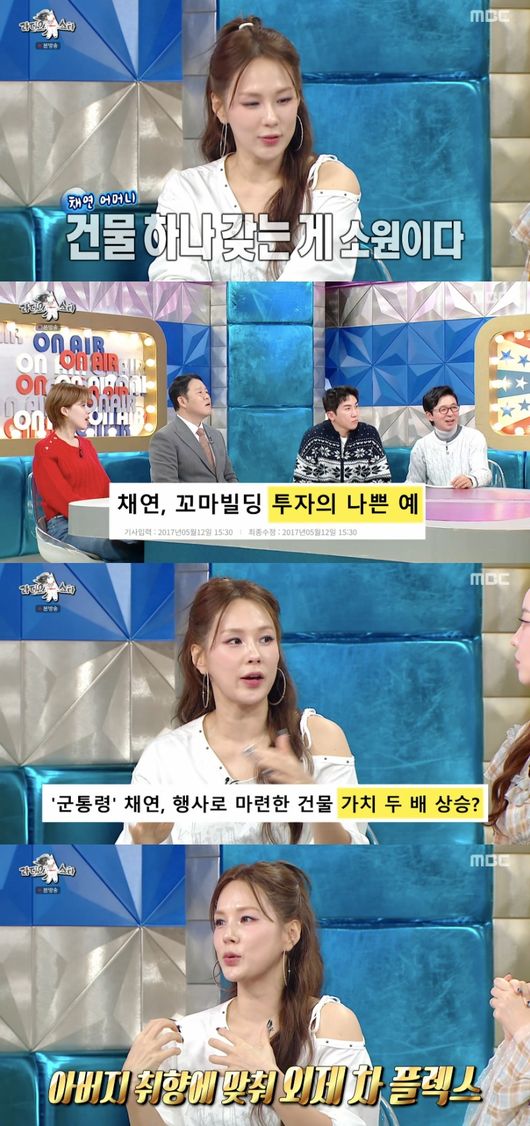 자양동에 위치한 건물을 샀다는 것. 채연은 “왜 거기다 사냐고 했다. 잘못투자 기사도 났다. 근데 투자 목적이 아니었고 잘 알아서 산 건데 왜 바보 같이 사냐고 했다”라고 전했다.