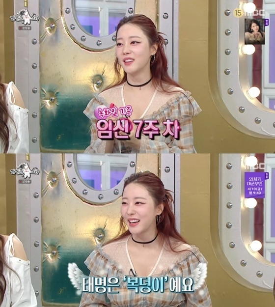 더불어 고우리는 "고민을 많이 했는데, 사실은 임신이 됐다"라고 고백해 모두를 놀라게 했다. 고우리는 녹화일 기준 임신 7주 차라고 밝히며 임신부 배지를 인증하기도. 이어 고우리는 "(임신테스트기) 두 줄이 떴는데 다음날 '라디오스타'에서 전화가 왔다"라며 태명 '복덩이'까지 공개하는 등 모두의 축하를 받았다.