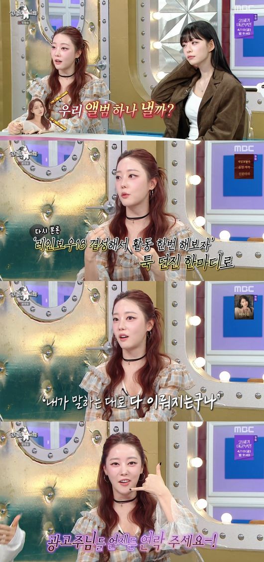 이때 채연은 “씨스타19면 약간 19금 의미냐. 18은 욕의 18이냐”라고 물었다. 고우리는 “행사가면 많은 분들이 좋아한다. 행사를 하자, 워터밤도 가자 했는데 음악 방송도 하게 되고 워터밤까지 가게 됐다. ‘이거 신기하다 말하는대로 다 이루어지는 구나’ 그동안 내가 말을 안 해서 그렇구나 싶었다”라고 밝혔다.