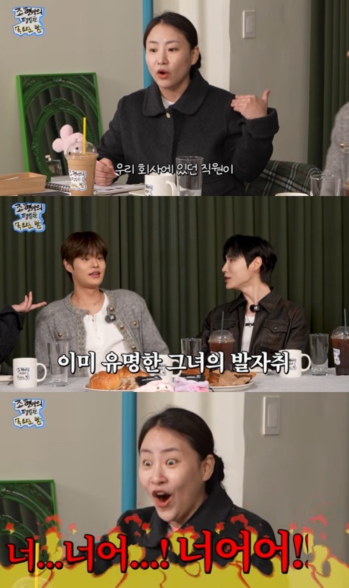 특히 조현아가 "우리 회사에 있던 (팬심에) 직원이 여기로 옮겼었어"라며 이대휘를 가리켜 이목이 쏠렸다. 이대휘가 "맞아!"라면서 직원의 실명을 언급해 웃음을 샀다. 조현아가 "그래서 내가 (그 직원한테) '너! 너!' 했는데, 그런 인연이 있더라"라고 전했다.