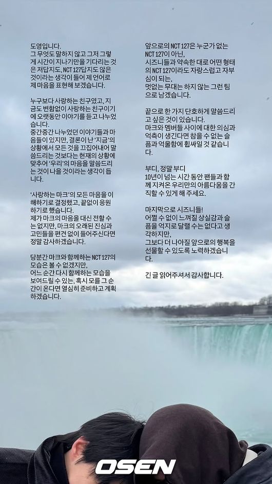 [OSEN=지민경 기자] 그룹 NCT 도영이 마크의 팀 탈퇴와 관련한 심경을 밝혔다.