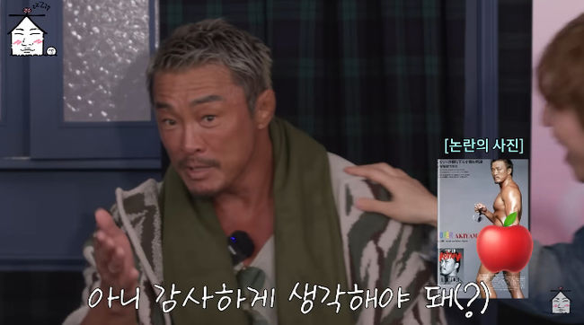 김종국은 "형수님도 누드로 찍었냐"라고 물었고, 추성훈은 "같이 누드로 찍었다"고 고개를 끄덕였다. 대성은 "나이가 언제냐"고 물었고, 추성훈은 "이때는 30대 초반이었다"라고 설명했다.