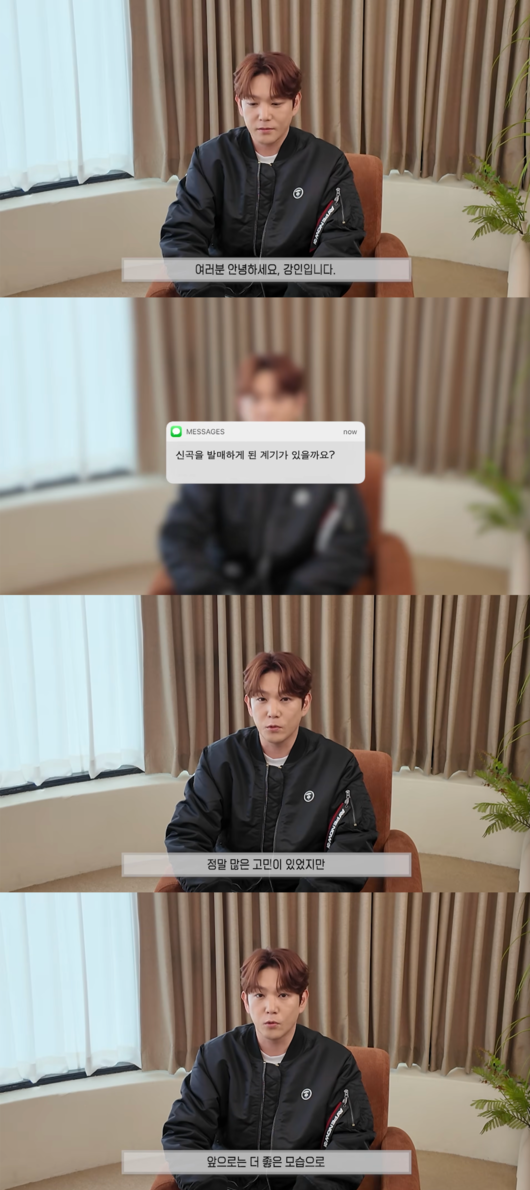 이날 강인은 셀프 인터뷰 형식으로 준비하며 “여러분 안녕하세요. 강인입니다. 정말 오랜만에 인사를 드립니다”라고 말문을 열었다.