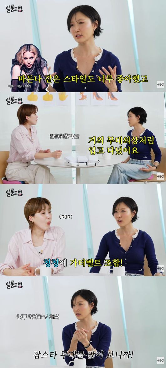 화사는 “마돈나 같은 스타일도 너무 좋아했고, 브리트니 스피어스, 비욘세 이런 사람들을 너무 좋아했다 보니까 거의 무대의상처럼 입고 다녔다”라며, “그때 당시에 망사인데 가터벨트로 돼 있는 것들도, 청청에 가터벨트 해서 그런 식으로 나만의 개성을 (표현했다). 중학교 1학년 때인 것 같다”라고 밝혀 눈길을 끌었다.