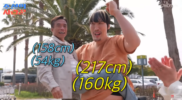 제주 공항에서는 '연예계 마당발' 윤정수와 '6년 차 제주도민' 최홍만이 심권호를 마중 나와 역대급 비주얼을 완성했다. 체육계 최단신인 158cm의 심권호, 결코 크지 않은 윤정수, 그리고 217cm의 거인 최홍만이 한 화면에 담기자 최성국은 "영화 '반지의 제왕' 완성이다. 최홍만이 간달프고 두 사람이 호빗 같다"며 폭소했다.