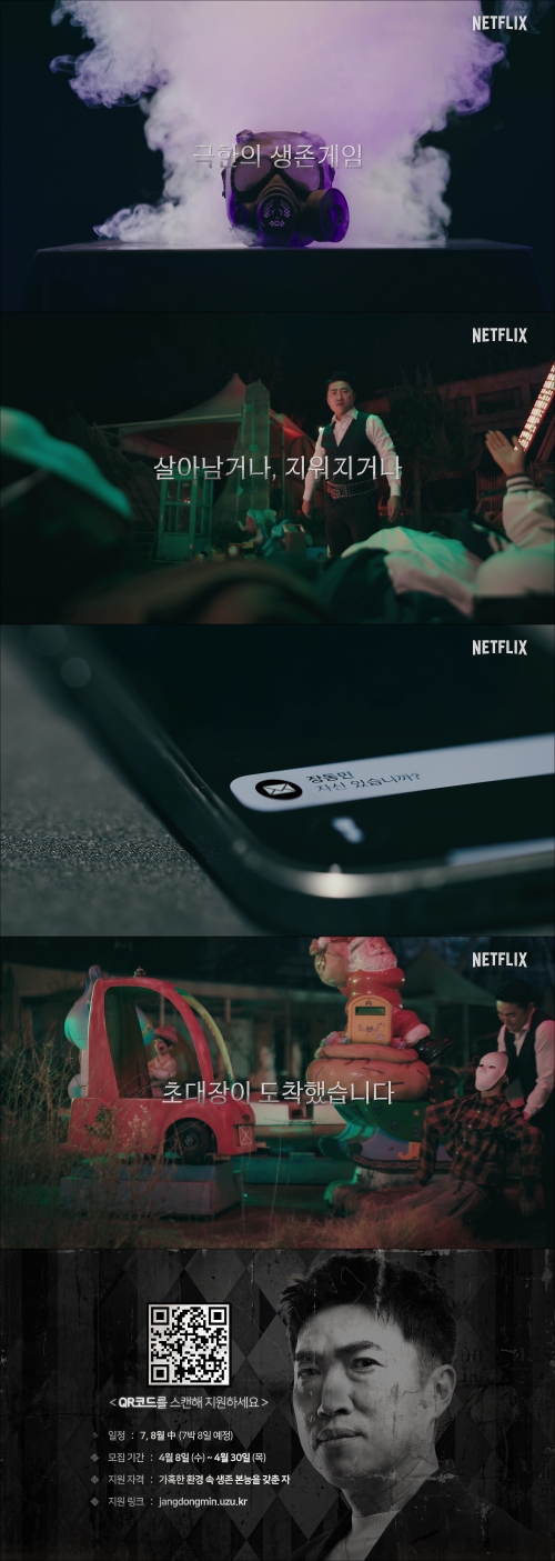 [OSEN=하수정 기자] 넷플릭스가 ‘서바이벌의 신’ 장동민이 설계하고 '피의 게임' 현정완 PD가 연출하는 극한의 두뇌 서바이벌 제작을 확정짓고 공개 모집을 시작했다.