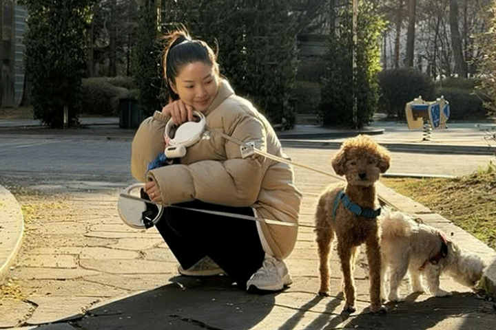 공개된 사진 속 류이서는 반려견과 함께 산책을 나선 모습이다.