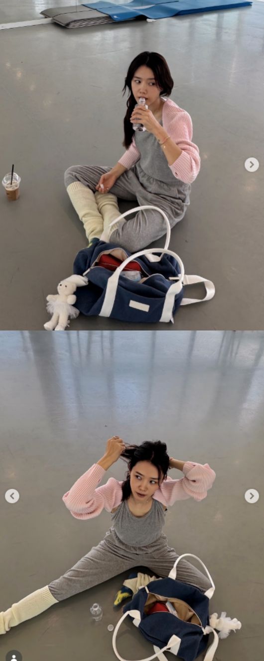 사진 속 채정안은 트레이닝복 바지 위에 레그 워머를 더해 발레복을 완성했다. 운동을 마치고 휴식을 취하는 듯 그는 바닥에 앉아 물건을 정리하거나 포즈를 취하고 있는 모습이 담겼다.