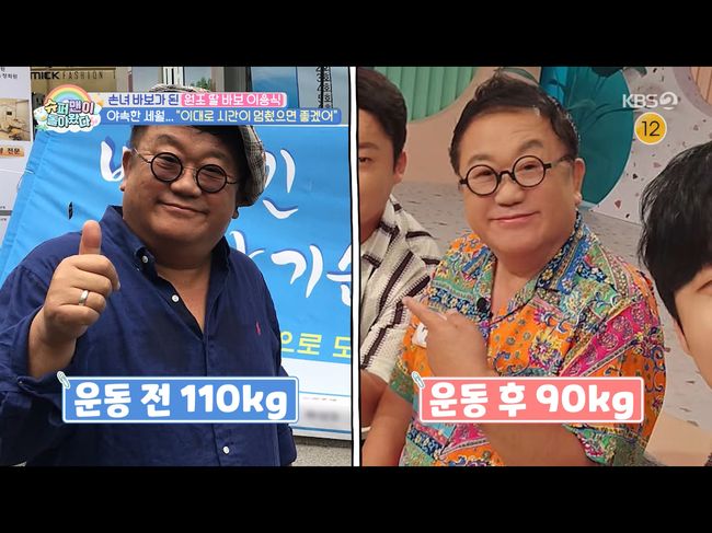 그는 매우 달라져 있었다. 이용식은 “난 운동이 너무 싫었다. 그런데 건강하게 오래 이엘이랑 살고 싶어서 운동한다”라면서 운동하는 습관을 들였다고 했다. 무려 110kg에서 90kg로 감량까지 성공하고 유아차 달리기에 도전하기도 했다고 한다. 이수민은 “아빠가 저를 늦게 낳으셔서 제 또래에 비해 부모님 연세가 더 있으시다. 그리고 제가 어릴 때 아빠가 심근경색으로 쓰러진 적이 있다. 제가 그게 생생하게 기억이 난다”라며 아빠의 건강을 걱정했다.