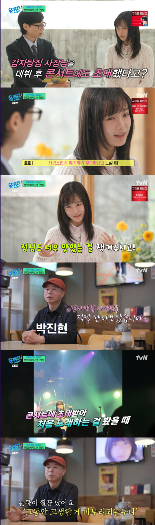 [OSEN=박근희 기자] '유 퀴즈 온 더 블럭’ 한로로가 무명 시절 든든한 버팀목이 되어주었던 감자탕집 사장님과의 감동적인 사연을 공개했다.