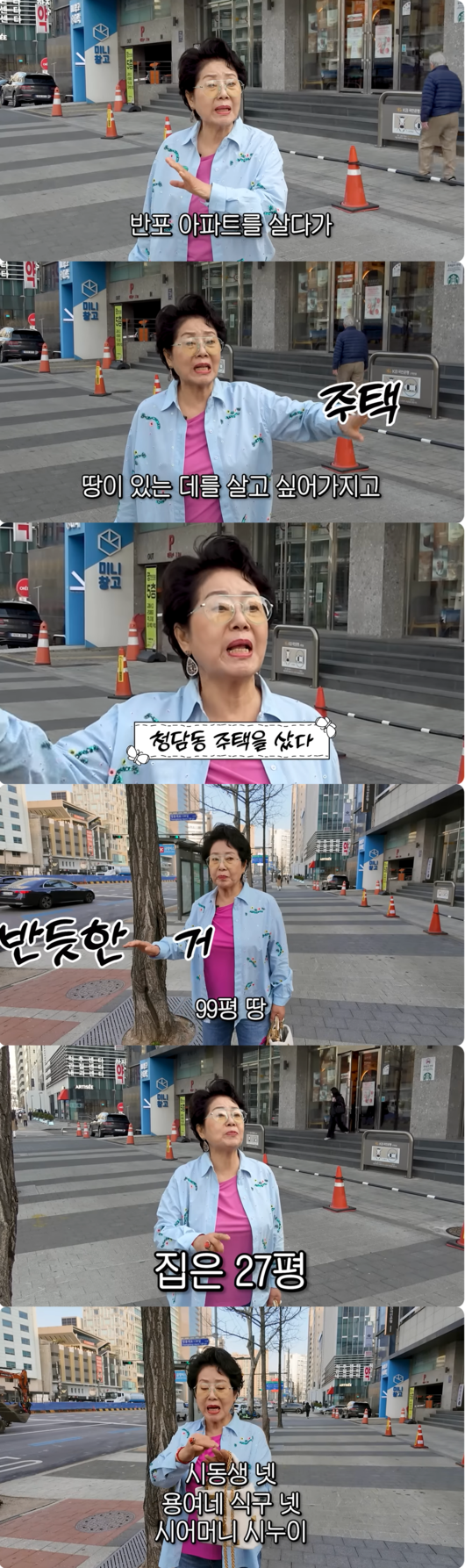 청담동 거리를 찾은 선우용여는 과거 자신이 매입했던 99평 땅을 가리키며 추억에 젖었다. 선우용여는 "원래 반포 아파트에 살았는데, 땅이 있는 데를 살고 싶어 이곳에 99평 땅을 샀었다"고 회상했다.