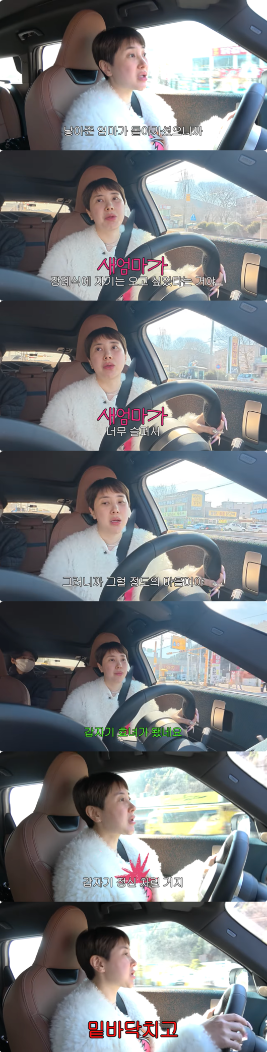 이어 서인영은 코로나19 시기에 세상을 떠난 친엄마를 언급하며, 새엄마의 따뜻한 품성을 다시 한번 강조했다. 서인영은 새엄마가 "장례식이 자기는 오고 싶었다는 거야. 너무 슬퍼서. 그러니까 그럴 정도의 마음이야"라고 말하며, 친어머니의 마지막 길까지 진심으로 슬퍼해 준 새어머니의 깊은 정에 감사함을 전했다.