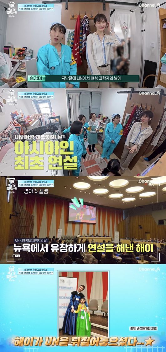 김숙은 “어느 정도 잘하냐”라고 물었고, 송경아는 “지난달에 UN에서 여성 과학자의 날에 아시아인 최초 연설을 했다”라고 밝혔다. 실제로 뉴욕에서 유창하게 연설을 해낸 해이.