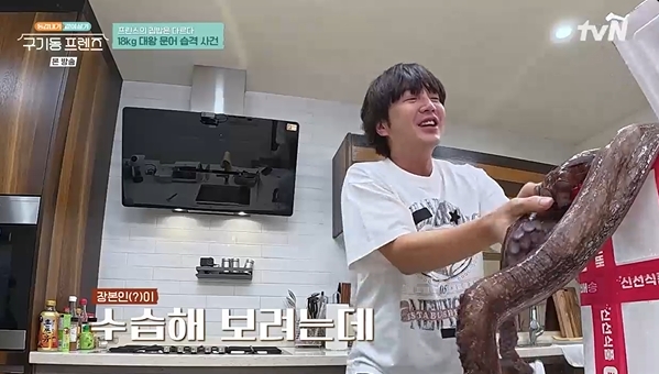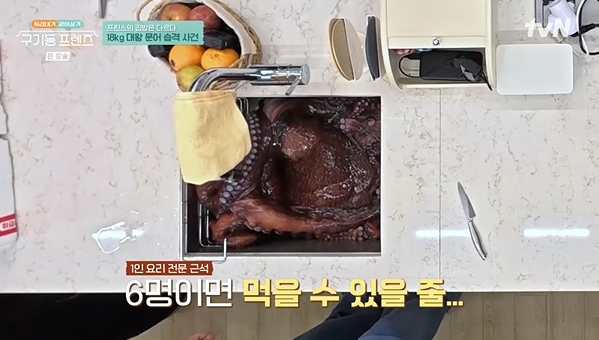 한편, 이날 저녁 식사는 '장금이' 장근석이 담당했다. 그는 이날을 위해 개인 조미료까지 가져오는 정성을 보였다. 특히 18kg에 달하는 생문어를 가져와 모두를 놀라게 했는데, 문어가 박스를 탈출하며 현장은 순식간에 아수라장이 됐다. 장근석, 이다희, 안재현, 경수진이 힘을 합쳤지만 문어는 끝없이 탈출을 시도했고, 멤버들은 간신히 문어를 싱크대로 유인하는 데 성공하며 첫날부터 아찔한 동거를 예고했다.
