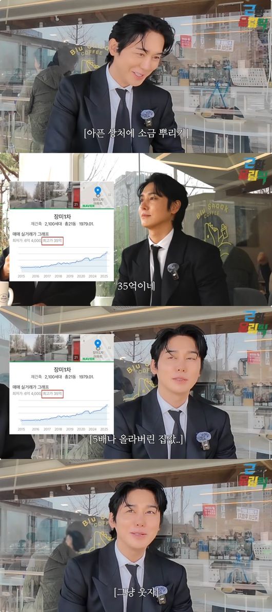 이에 놀라던 장성규는 현재 해당 아파트의 시세를 검색해 본 후에 “지금 시세가 2008년도에 6~7억 원 했었는데, 최근 실거래가가 35억 원”이라고 말했다. 김상혁은 “ 됐어..”라고 체념하면서도 “잘살면 됐지”라고 덧붙였다.