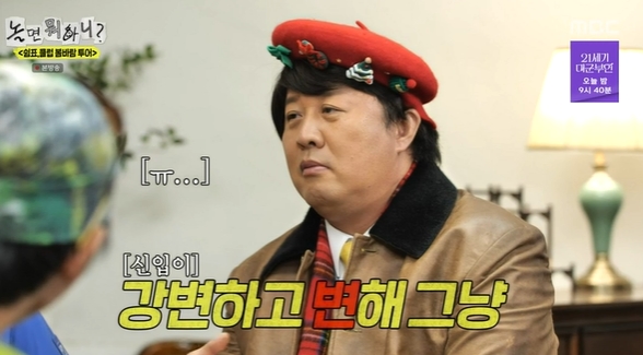 11일 방송된 MBC 예능프로그램 ‘놀면 뭐하니?’에서는 ‘쉼표, 클럽’ 시샵 유재석(폐오르간), 하하(늙은 섞박지), 허경환(잔땀), 주우재(이윤석), 정준하(강남역 변우석)가 뜻밖의 신입 회원을 맞이한 장면이 전파를 탔다.