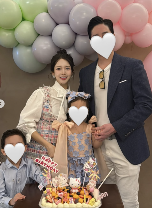 공개된 사진 속에는 핑크색 풍선과 화려한 케이크로 꾸며진 파티장에서 행복한 미소를 짓고 있는 이필립, 박현선 부부와 두 자녀의 모습이 담겨 있다. 특히 벨라를 위해 온통 핑크빛으로 물들인 파티장 분위기가 시선을 사로잡는다.