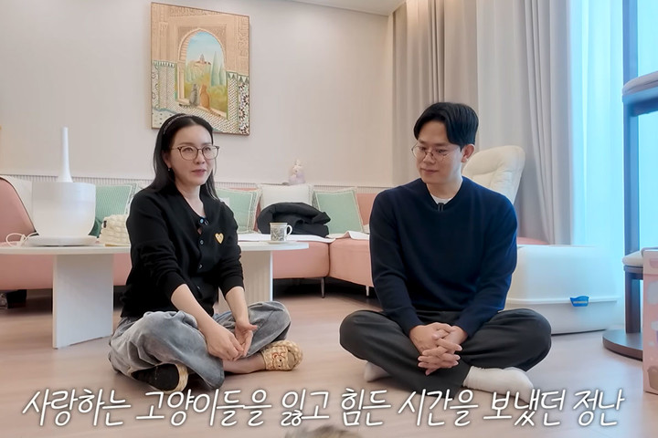 지난 8일 김정난이 운영하는 채널에는 '고양이 전문 수의사 미야옹철도 놀란 20년 차 집사 김정난 고양이들의 장수 케어 비결'이라는 제목의 영상이 업로드됐다.