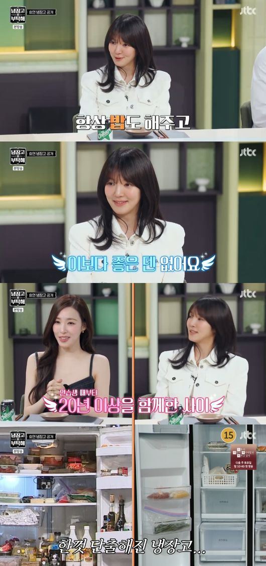 12일 방송된 JTBC ‘냉장고를 부탁해’(이하 ‘냉부해’)에서는 소녀시대 티파니와 효연이 게스트로 출연한 가운데 효연의 냉장고가 공개됐다.