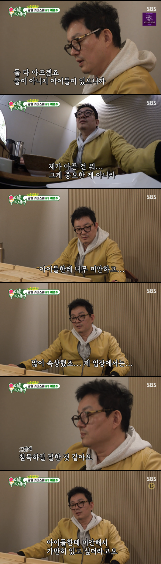 [OSEN=박근희 기자] '미운 우리 새끼’ 배우 이범수가 오랜 침묵을 깨고 이혼 과정과 그에 따른 심경을 솔직하게 털어놨다.