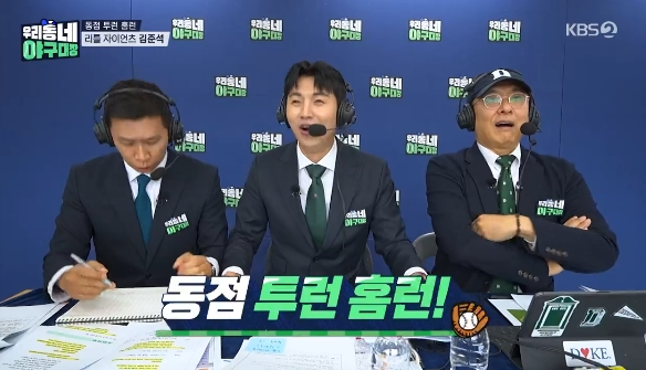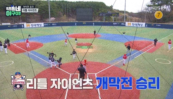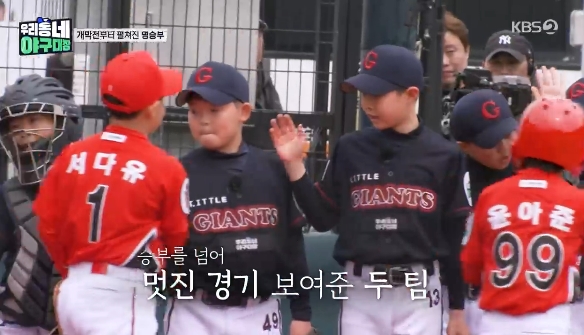 12일 방송된 KBS2 '우리동네 야구대장'에서는 이대호 감독의 '리틀 자이언츠'와 나지완 감독의 '리틀 타이거즈'가 개막전 포문을 열었다. 초등학교 3, 4학년 선수들의 경기라고는 믿기지 않는 치열한 접전이 벌어진 가운데, 시작부터 대형 '홈런'이 터져 나왔다.