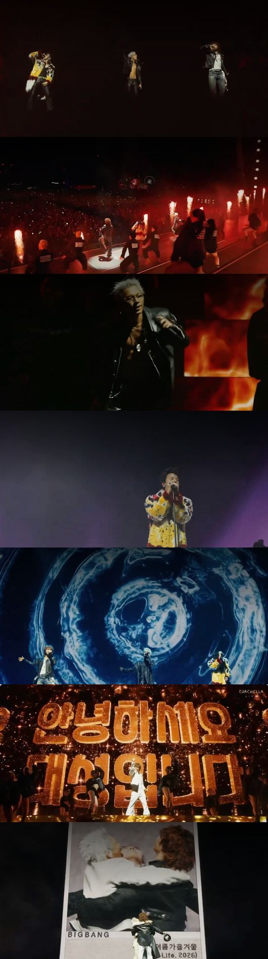 빅뱅은 12일(현지 시간) 미국 캘리포니아 인디오에서 열린 세계 최대 규모의 음악 페스티벌 '코첼라 밸리 뮤직 앤드 아츠 페스티벌'(Coachella Valley Music and Arts Festival, 이하 '코첼라')의 대형 무대인 아웃도어 시어터(Outdoor Theatre) 무대에 올라 약 60분간 공연을 펼쳤다.