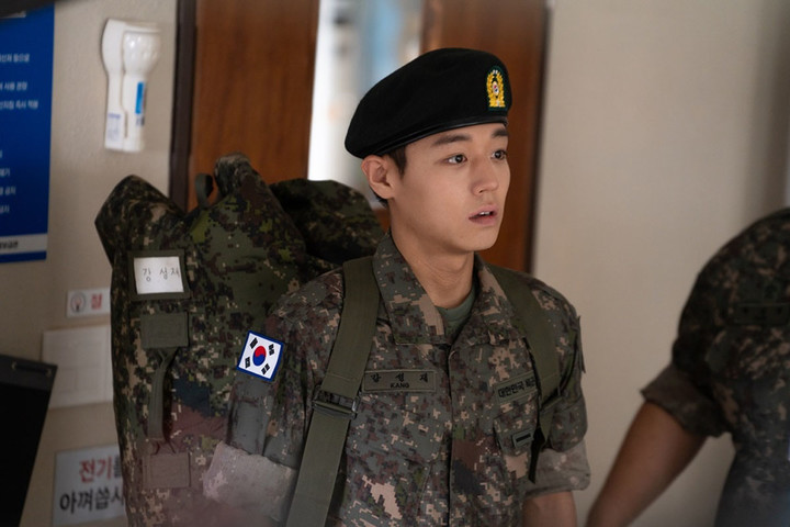 (MHN 민서영 기자) 영화 '왕과 사는 남자'의 단종 박지훈이 독기에 찬 눈빛을 지우고 티빙 오리지널 '취사병 전설이 되다'에서 군기가 빠짝 든 이등병으로 돌아온다.