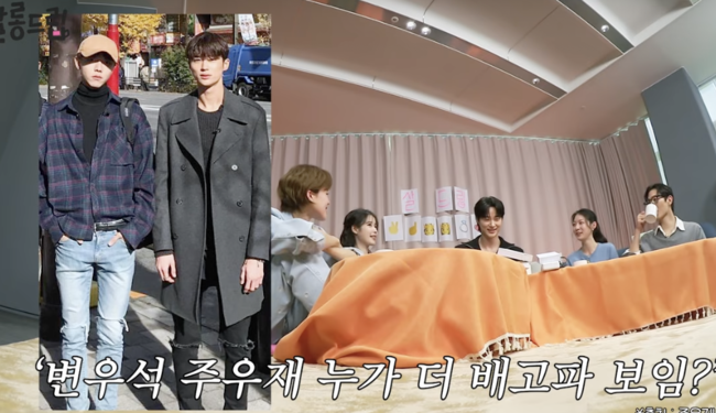 노상현과 변우석은 과거 모델시절 함께 화보 찍은 사이라고 했다. 변우석은 노상현에 “다가가기 무서웠다 외국다녀와서 얼마 되지 않았다”며 “아우라가 있어 멋져서 다가가기 힘들었다”고 했다. 낯가림이 심했다는 노상현은 “당시 변우석 키가 진짜 컸다 멋지기도 했다 웹툰에서 나온 비주얼이었다”고 하자 장도연은 “주우재랑 못 먹은 피골이 상접한 사진 많이 나온다”고 해 웃음짓게 했다.