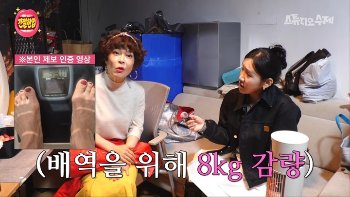 이날 김지유는 조혜련을 보자마자 "선배님 왜 이렇게 달라졌어요"라며 놀라움을 드러냈고, 조혜련은 "전에 만났을 때보다 8kg 빠졌다"고 답했다. 이어 "지금 허리가 24인치 될 것 같다"고 말하며 갑작스럽게 치마를 내리고 허리 라인을 보여줘 웃음을 자아냈다. 자막으로는 "신민아, 강민경과 같은 허리 둘레"라는 설명이 더해져 놀라움을 더했다.