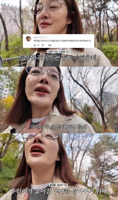 이어 "댓글 하나하나 틀린 말 없어. 아이 하나로 만족하면 되는데 내 고충은 사실 이런 게 있어. 내가 외동딸로 자랐기 때문에 나 혼자 부모님을 책임져야 한다는 게 지금까지 내 어깨에 짊어진 숙제다"라고 밝혔다.