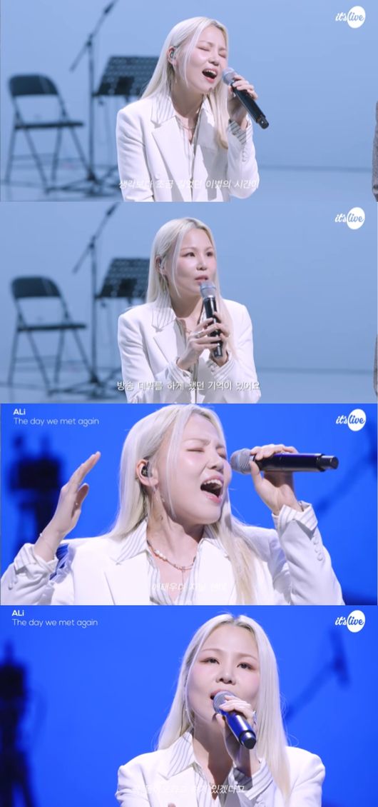 그 중에서도 알리는 휘성의 히트곡 중 '다시 만난 날'을 불렀다. 화이트 슈트로 추모의 의미를 더한 그는 특유의 깊이 있는 음색과 탄탄한 가창력은 물론 섬세한 표현으로 고인과의 노래를 재해석했다.